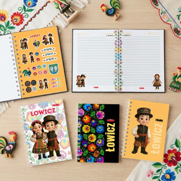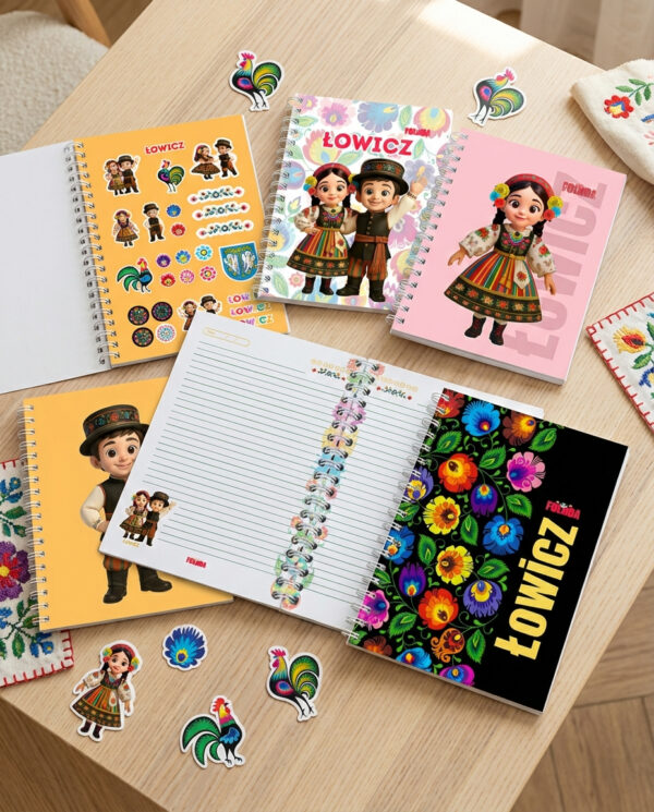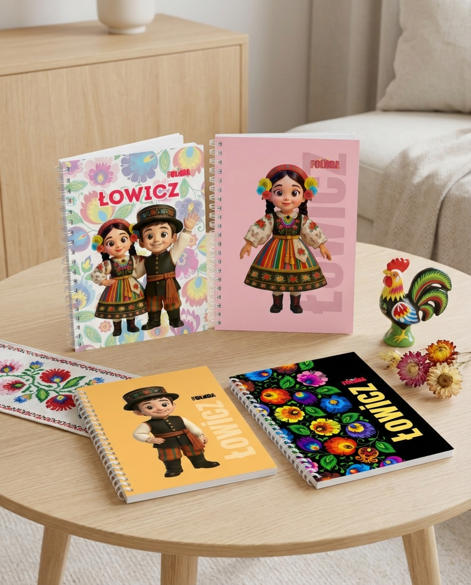 O Caderno Lowicz faz parte da Coleção Polônia da Folkoa e é inspirado na arte folclórica polonesa da região de Lowicz, reconhecida por seus padrões tradicionais, cores marcantes e forte identidade cultural.