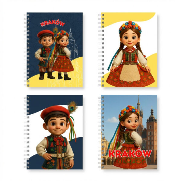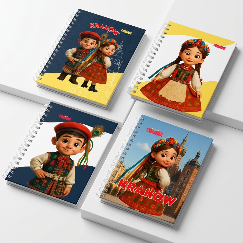 O Caderno Kraków – Coleção Polônia é inspirado na cidade de Kraków e em seus trajes típicos tradicionais, símbolos de identidade, história e expressão cultural polonesa. Cada elemento do design remete às cores, formas e detalhes presentes no vestuário tradicional da região, reinterpretados em uma criação autoral contemporânea da Folkoa.
